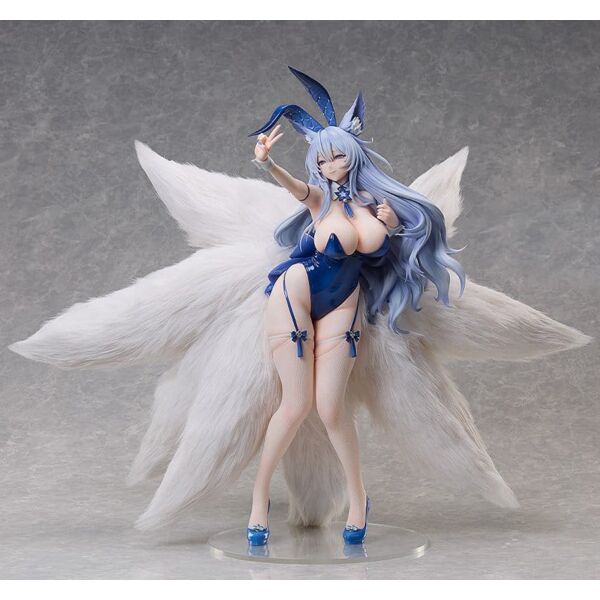 From "Azur Lane" comes a 1/4 scale figure of the Sakura Empire aircraft carrier Shinano, who has slipped into her Visions of Fantasy outfit. This long-awaited figure of Shinano in her bunny outfit is sure to make a statement with its size. Her supple body lines and facial expression were carefully recreated using the Visions of Fantasy Live2D motion as reference. Note the contrast between the glossy finish of her bunny suit, the texture of her skin, and her white fishnet stockings. Her characteristic nine tails, made of synthetic fur, are thick and soft to the touch, and you can display her with these tails in various positions thanks to the simple boning included. Everything from her long flowing hair to her ears and accessories has been sculpted with great attention to detail. The allure of Shinano in her bunny outfit has been captured with a level of fullness only possible in 1/4 scale size. Be sure to add her to your collection!