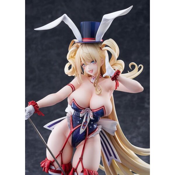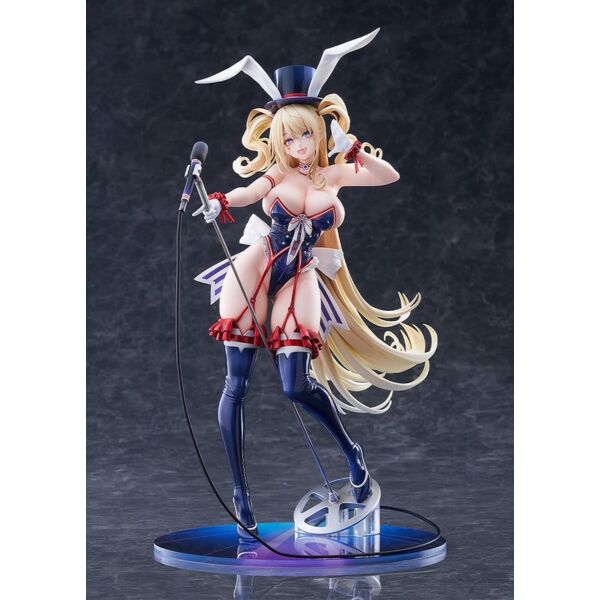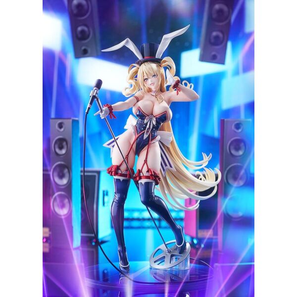 From the popular mobile game "Azur Lane" comes a figure of the Eagle Union cruiser Guam in her Stage-Setting Charmer outfit! Her gorgeous bunny girl-themed stage outfit has been faithfully captured in figure form! You'll love Guam's bright, energetic expression and voluptuous curves that work to highlight her charming appeal. Her trademark blonde twintail hairstyle is designed to convey dynamic movement and the delicate flow of each strand of hair. Her starry eyes and playful expression perfectly embody the essence of a charming entertainer. Guam's voluptuous physique is meticulously sculpted and rendered with soft skin texture painting. This figure boasts a stunning enamel gleam on its beautiful outfit and sensual thigh contours, offering eye-catching details from every angle. Don't miss this chance to add Guam's incredibly charming performance to your collection, Commander!