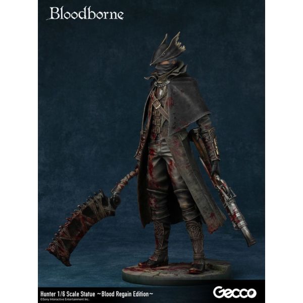 "This new Bloodborne Hunter statue, "Blood Regain Edition" replaces the weapons from The Old Hunters version released back in 2018 with the Saw Cleaver & Blunderbuss. Also included in this luxurious and deluxe set are the Hunter Axe, Pistol, Torch, Cannon and Kirkhammer.   Splashed with the blood of his enemies across his body, the ""Blood Regain Edition"" strongly captures the "Offense is the Best Defense" game concept of Bloodborne. The Trick Weapons are wielded in his right hand along with the Firearms in his left hand, providing an intimidating display. Also included are the transform modes offering even more custom display options.   The face captures the expression of the young Hunter, who comes to the ancient city of Yharnam searching for blood medicine, his amber wolf like eyes an impressive and intimidating vision. The base is newly sculpted capturing the image of the underground passage of the Chalice Dungeons."