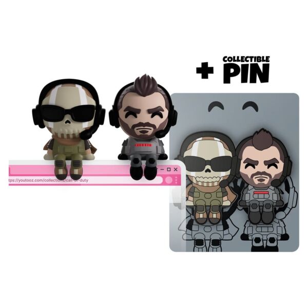 Stay Frosty! Ghost and Soap are here to be the best backup you could ask for with our brand new Monitor Buddiez! Sitting at 2.4 and 2.6 inches tall respectively, Ghost wears black shades and a matching headset over his iconic skull mask as pale stripes run across his chin, and he's dressed in a brown duster and army green fatigues. While next to him, a serious frown peeks through Soap's brown beard as a black headset wraps over his spikey mohawk, and he wears a grey outfit under his tactical vest that has a row of red shells on the chest. The absolute best companions while you're working, taking out bad guys, or just hanging out, they'll make sure to always be right in your line of sight to bring a smile to your face! These Buddiez ship in a lovingly designed box with the interior covered in a dark black and grey map, while the exterior sees the pair sitting on the top of a computer monitor as an aerial map covers the background, and their figures can be seen through the large clear window at its front. About Call of Duty: Call of Duty is a series of First Person Shooter video games spanning two decades and covering multiple wars, both real and fictional, where you take the role of multiple soldiers to fight your way through intricate and compelling stories, or just sniping your friends in wild multiplayer death matches.