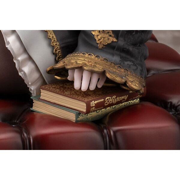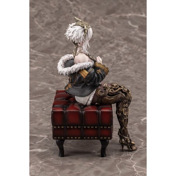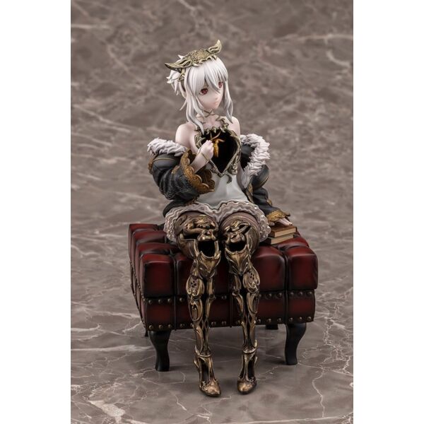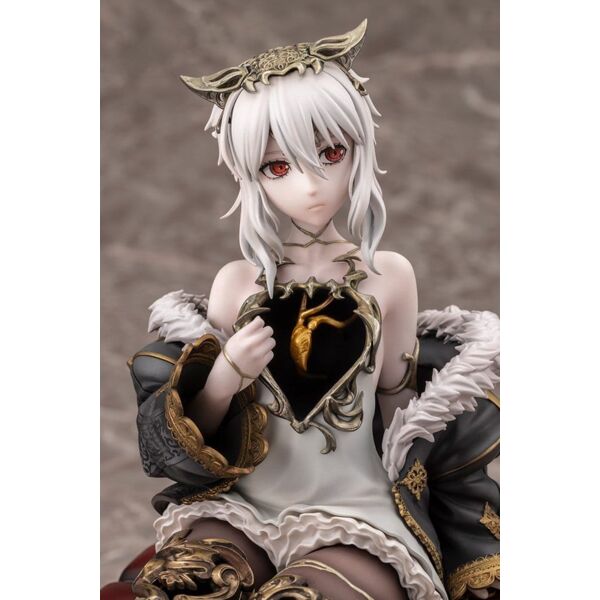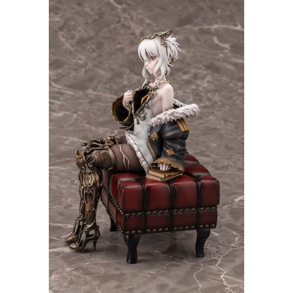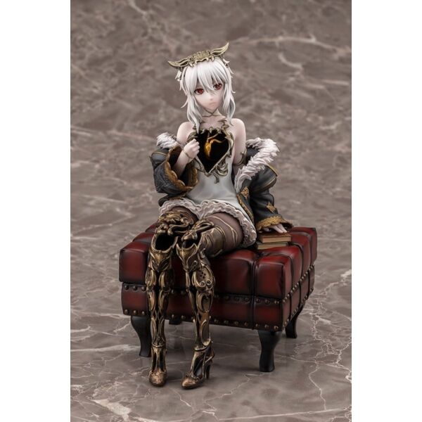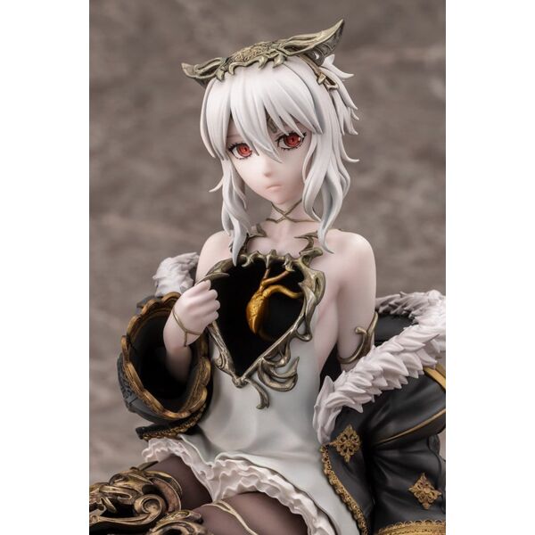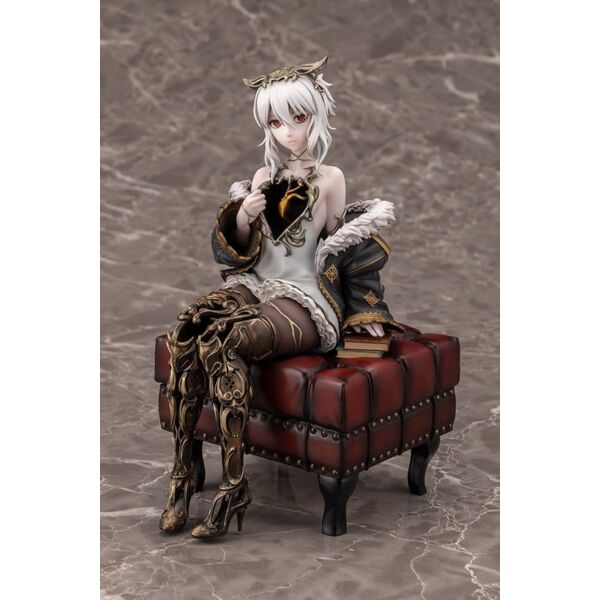 Lou MagMell from CODE VEIN II is released as a scale figure! She sits in a relaxed pose with one hand resting on a stack of books. An antique stool acts as the base, a gorgeous addition that allows fans to further enjoy the world of the game. Lou’s iconic halved heart is faithfully recreated, along with her hollow chest and legs! Careful attention was paid to her flowing body lines and the volume of her thighs, resulting in a beautiful sculpt that could only be achieved in figure form. The heart is painted with a pearlescent and metallic coating, giving it an enchanting glow. The kintsugi (gold repair) technique uses subtly different colors for each part, creating a sense of luxury. Add this Partner to your collection today! Product Size: 18 cm