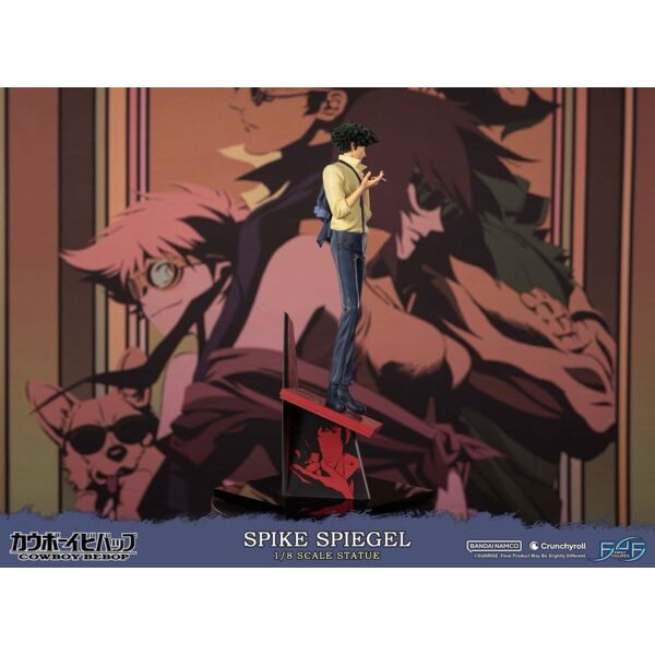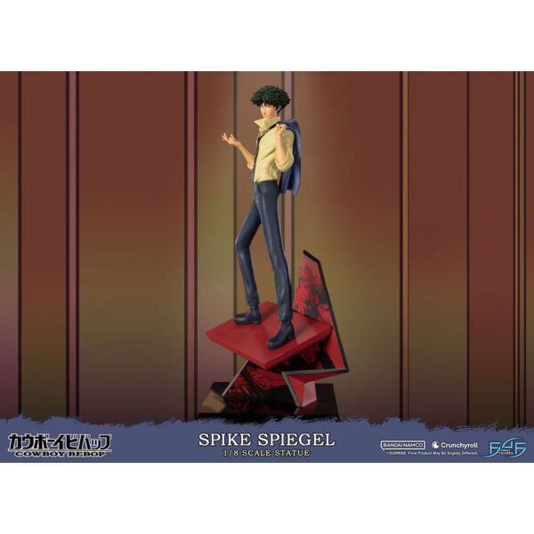 First 4 Figures is proud to introduce their latest 1/8 scale resin statue collectible, Spike Spiegel. COWBOY BEBOP - SPIKE SPIEGEL 1/8 RESIN Spike Spiegel is a nonchalant yet skilled bounty hunter, known for his lazy charm, sarcastic edge, and unmatched mastery of martial arts and weaponry. Beneath his seemingly indifferent attitude lies a complex past, giving him a cool yet tragic presence. This high-quality 1/8 scale resin statue showcases Spike Spiegel in a relaxed pose, holding a cigarette in his right hand while casually slinging his suit jacket over his left shoulder. The statue faithfully captures Spike's distinctive appearance, including his messy hair, blue leisure suit with a yellow shirt, and tall, lean frame. The base boasts a meticulously crafted abstract design that perfectly reflects the iconic art style of Cowboy Bebop's opening credits. Cowboy Bebop - Spike Spiegel 1/8 Resin includes: - Premium painted resin statue - Highly detailed base inspired by Cowboy Bebop's art style - Limited edition numbering and authentication card Size: 34 x 14,5 x 14 cm