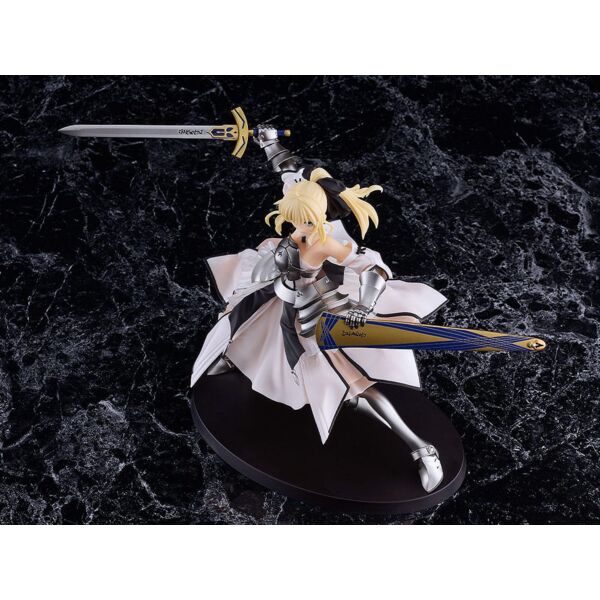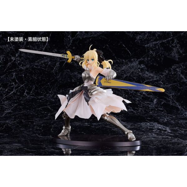 From "Fate/stay night" comes a Reincarnation plastic model of Saber Lily, an alternate form of the King of Knights, retaining the same high-level sculptural beauty as the original scale figure! The sculpting has been refined by Takayuki Kawahara, the sculptor who crafted the original figure. Don't miss the joy of assembling this masterpiece with your own hands. The model features a dynamic pose as Saber Lily slashes with Excalibur as she champions Avalon, her billowing dress sculpted in exquisite detail. Water-slide decals have been used to recreate certain decorations and patterns. One pre-printed face plate with eye decals and one unpainted face plate for paint and decal application are included.