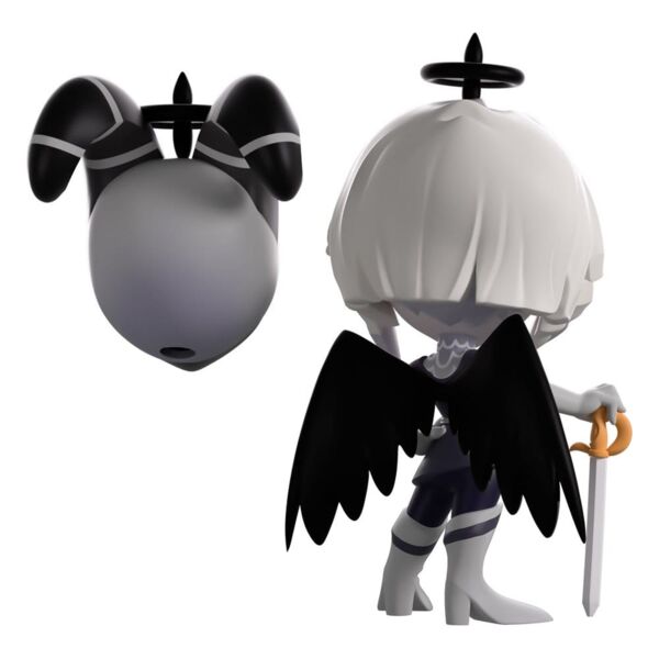 "Angels don't make mistakes" Lute's set her sights on Youtooz for this year's Extermination, and you can decide how to unleash her wrath with 2 interchangeable heads! One is her masked head that has a wicked white smile and mismatching eyes peering out from its heart-shaped face as a pair of striped black horns curl out from the top, while the other head sees her long-lashed yellow eyes glaring out above a sinister smirk as a sharp bob of white hair frames her pale face. She stands at 5.3 inches tall with a left hand resting on her waist as the right grips the hilt of a sharp sword with its tip pressed into the ground, black wings with white and striped insides spread out from her shoulders, as she wears a blood splattered grey dress and light elbow-length gloves that match her pointed boots. The exterior of her packaging sees black flames rising from behind a glowing green and black symbol, while the interior is filled with a hazy red and purple. The protective sleeve is then designed to show off a dark cityscape as her figure can be seen through the large clear window at the packaging's front. This collectible ships in a matte, embossed, protective outer sleeve and a custom-sized plastic protector for maximum protection during shipping. About Hazbin Hotel: Hazbin Hotel is an animated musical series created by Vivienne "VivziePop" Medrano which follows Charlie Morningstar, the princess of Hell, in her goal to 'rehabilitate' sinners to allow them to enter heaven via her 'Hazbin Hotel'. With the pilot initially releasing on YouTube in 2019, the first season premiered on Amazon Prime Video in 2024, seeing the largest debut for a new animated series on the platform!