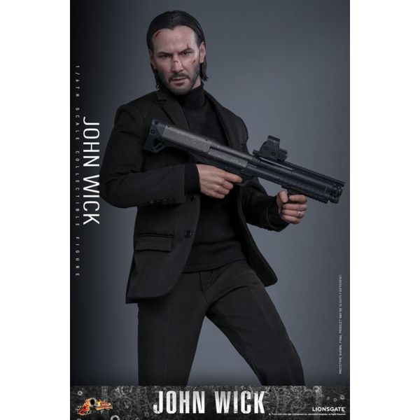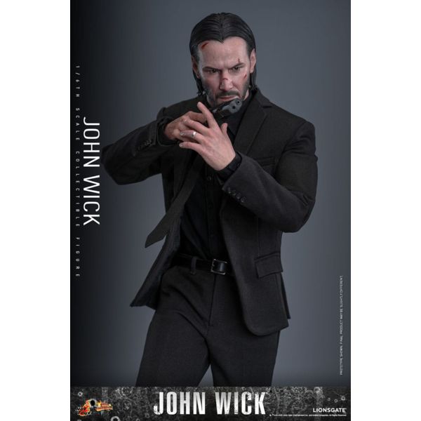 Once a legendary assassin who vanished into retirement, John Wick sought peace in a quiet life away from the blood-soaked underworld. But when tragedy struck and ruthless enemies took away his last remaining solace, the man they once called the Baba Yaga was forced back into the shadows he left behind. Sideshow and Hot Toys is proud to present the John Wick Sixth Scale Collectible Figure, meticulously crafted the legendary hitman. The John Wick action figure features a newly developed head sculpt with battle-damaged paint applications and separate rolling eyeballs, complemented by a meticulously sculpted, slicked-back hairstyle. With twelve interchangeable hands, from fists and commanding open gestures to suit-holding and gun-holding, this figure enables dynamic action and expressive poses. The finely tailored costume highlights John Wick's signature all-black look. His attire includes a suit, shirt, tie, high-neck top, belt with two gun holsters and a double magazine pouch, pants, socks, and shoes. John Wick comes armed for any mission, included are a pistol with a rackable slide, removable silencer and magazine; a sub-compact pistol with a rackable slide and removable magazine; an assault rifle with multiple adjustable parts including sights, grip, stock, and charging handle; a sniper rifle with a slidable bipod, telescopic sight, and pullable bolt; a shotgun equipped with a slidable holographic sight; and a combat knife. The set also includes the iconic pencil, famously known as the tool he allegedly used to take down three men. Accessories include stacks of gold coins and individual loose coins, the underworld currency that plays a crucial role throughout the John Wick films. A tribute to the Baba Yaga himself, this sixth-scale figure embodies the unyielding finesse and style that has made John Wick a modern icon.