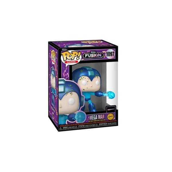 The design follows the unmistakable POP! style, featuring an oversized head and simplified facial details that make the character instantly recognizable. Despite the stylized approach, the figure preserves key elements of Mega Man’s armor and silhouette.
