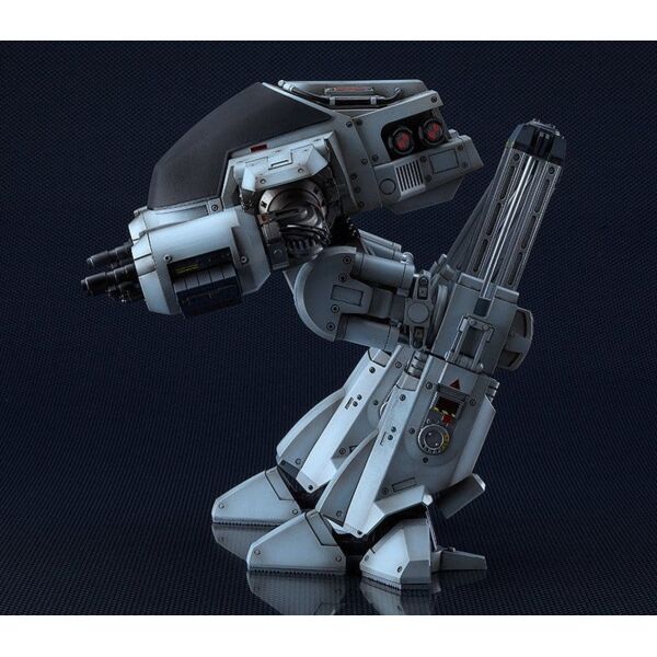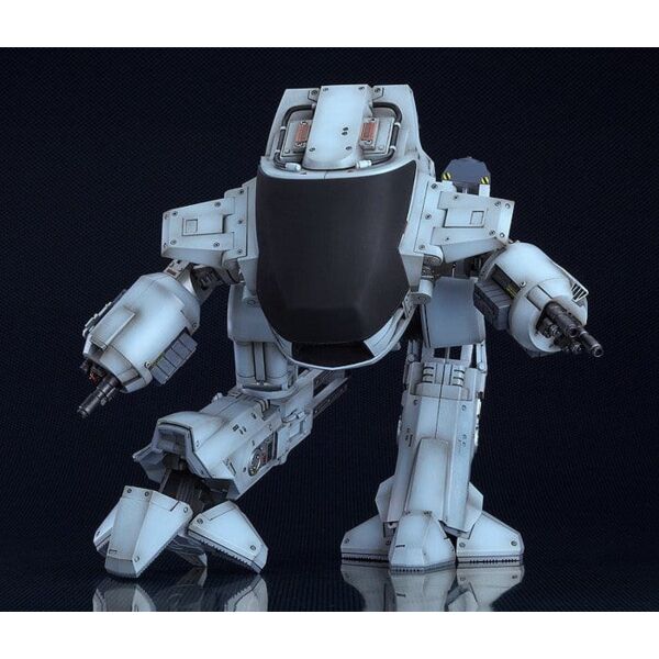 From the movie "ROBOCOP" comes a MODEROID plastic model of ED-209, the peacekeeping machine created by Omni Consumer Products. The model stands at around 20cm tall when completed. Its joints, pistons and slide rails are all articulated, allowing you to recreate intimidating poses and comical poses alike. The model kit is made of PS and ABS plastic with POM and PE used for some joints and features runners separated into four colors (light gray, silver, medium gray, dark gray). Wires have been used to recreate the cables connecting to its arms. Water-slide decals are included for further detailing. Preassembled joints are included, making the model easy to pose. Be sure to add it to your collection along with HAGANE WORKS ROBOCOP!