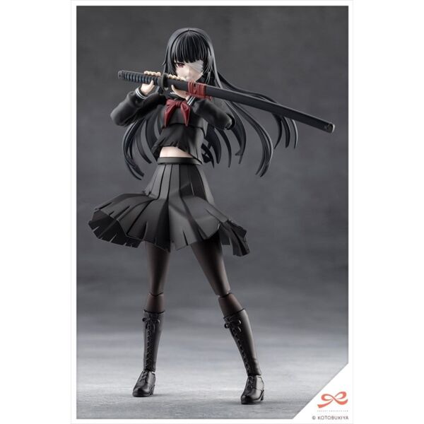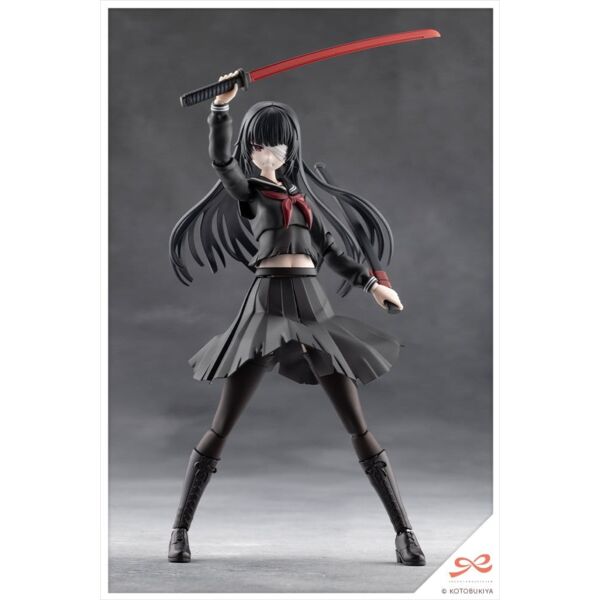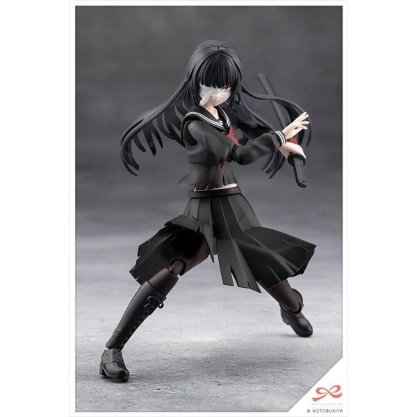 Action Pose Joints: As this character is an actress of a tokusatsu show heroine, the kit features a specially designed joint structure that allows for more expressive, dynamic poses. This makes it slightly different from previously released SOUSAISHOJOTEIEN models and may require a little more experience to assemble. Using joints and features such as extendable shoulders, a chest and stomach that can twist in all directions, an adjustable skirt, and double-jointed elbows and knees, dynamic action poses can be created, like standing firm with a sword gripped with both hands, unsheathing the sword, and kneeling.