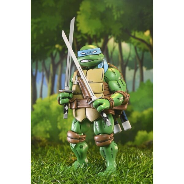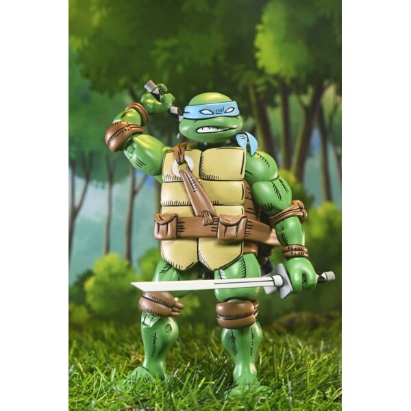 Celebrate over 40 years of Teenage Mutant Ninja Turtles comics and Usagi Yojimbo! Based on the work of legendary artist Stan Sakai and produced in collaboration with Dogu Publishing, this Ultimate Leonardo features all-new sculpts and authentic, stylized comic book deco. The 7-inch scale NECA action figure includes interchangeable heads and hands and his signature katanas. Comes in collector-friendly window box packaging with opening front flap. Size: 17.8 cm (7.00")