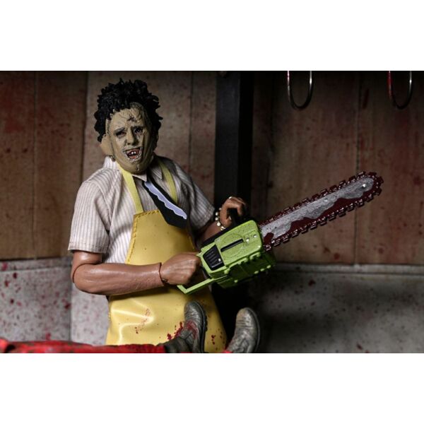 From Tobe Hooper's classic 1974 film The Texas Chainsaw Massacre comes an updated and improved Leatherface clothed action figure from NECA! The legendary killer comes dressed in tailored fabric clothing honoring the retro-style clothed action figures of the past. Donning his classic yellow apron look with striped shirt, this fully articulated, 8-inch figure includes his infamous chainsaw, an alternate hand, long hammer, and bracelet accessories. Bring home Bubba Sawyer to join your next family dinner! Comes in collector-friendly window box packaging.