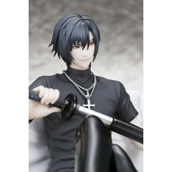 This officially licensed Togainu no chi PVC figure from QuesQ features the character Shiki. This detailed 1/7 scale statue stands approximately 13.5 cm tall.