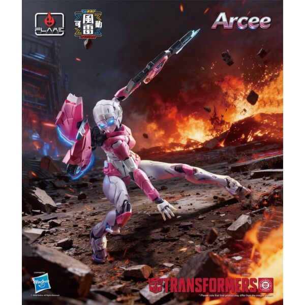 "Highly anticipated [Furai Action] Arcee is announced! - The size is ~160mm height. - It is fully painted pre-assembled version. - Over 60 articulation points for posing. - Including a base for supporting the figure during posing."
