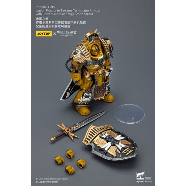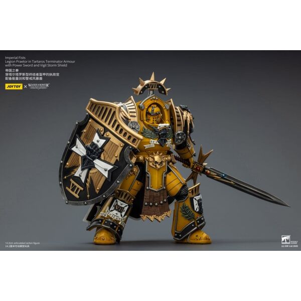 Warhammer Imperial Fists Action Figure Legion Praetor in Tartaros Terminator Armourwith Power Sword and Vigil Storm Shield 14 cm