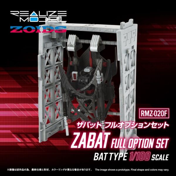 "?REALIZE MODEL?1/100 Scale Action Plastic Model Series A 1/100 scale action plastic model series that enhances "super articulation," "ease of assembly," and "collectability." By pursuing the user's perspective, not just in part count but also scale, design, and structure, it embodies every ideal. A deluxe version of RMZ-020 ZABAT featuring numerous additional parts. Its specially designed articulation allows full-body movement, enabling various action poses unique to bat-type Zoids, such as flight poses and hanging poses. The homing bomb stored in the abdomen is removable. The underside can be displayed with tires exposed or retracted. Additionally, it can be equipped with either triple anti-air missiles or a radome as optional parts. Also included is a hanger for displaying it in a hanging state and a base for displaying it in flight. The head can be assembled in either an autopilot mode or a manned flight mode. A pilot figure (soldier) is included and can be seated in the cockpit for the manned flight mode."