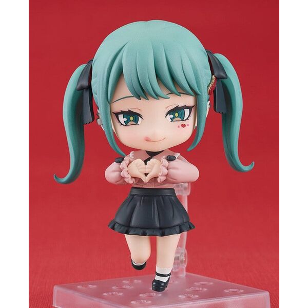 ¡Hatsune Miku, tal y como aparece en el videoclip de la canción «The Vampire» de DECO*27, se ha transformado en una Nendoroid! ¡No te olvides de añadir esta versión diabólicamente adorable de Miku a tu colección! Placas faciales: - Cara guiñando el ojo - Cara sacando la lengua - Cara llorando Piezas opcionales: - Máscara bajada - Máscara - Placas transparentes para las alas - Otras piezas opcionales para diferentes poses.