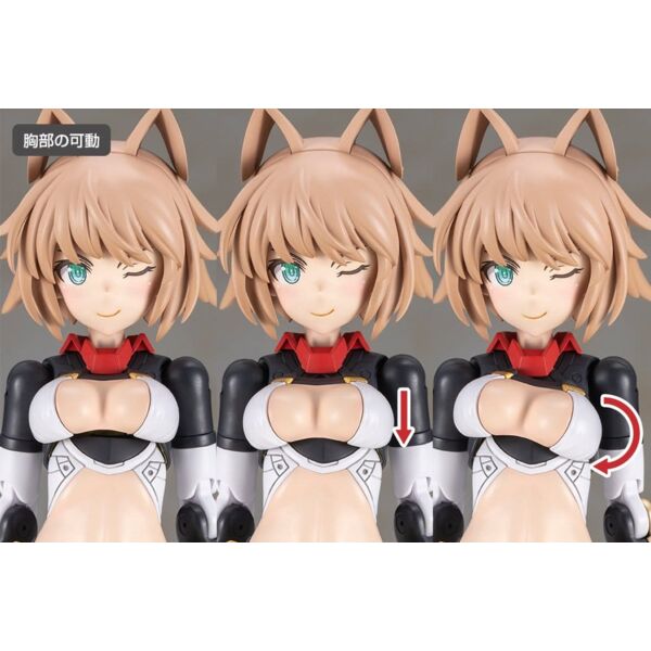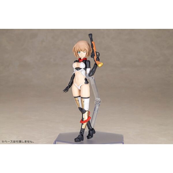 - El modelo está equipado con puntos de conexión de 3 mm para las articulaciones, lo que permite personalizarlo con piezas existentes de las series M.S.G, Frame Arms, Megami Device, Hexa Gear, Sousai Shojo Teien y Arcanadea.
