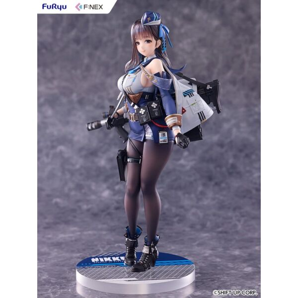 Estatua de "Goddess of Victory: Nikke". Realizada en PVC y a escala 1/7, tamaño aprox. 26 cm. Viene con una base en una caja con ventana.