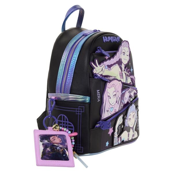 Una de las grandes virtudes de una mochila de Loungefly es que rara vez se limita a ser un simple complemento. Suele plantearse como una extensión del universo al que representa, y aquí eso encaja especialmente bien. La licencia Las guerreras K-pop Demon Hunters ya parte de una mezcla explosiva entre música, acción, estética potente y espíritu de equipo, así que trasladar todo eso a un formato de uso diario tiene bastante sentido. Esta mochila funciona muy bien precisamente por eso: porque no se siente como un producto genérico con un logo estampado, sino como un accesorio que recoge el tono visual de la franquicia y lo transforma en algo llevable, útil y con bastante presencia. Es el tipo de artículo que no solo acompaña un outfit, sino que prácticamente lo obliga a subir de nivel.
