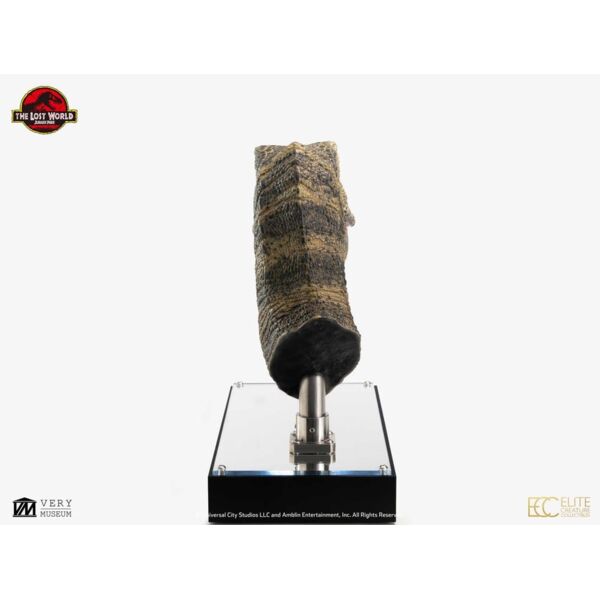 Junior es el hijo de Buck y Doe, personajes de «El mundo perdido: Parque Jurásico». De pequeño, Junior muestra un comportamiento instintivo y se alimenta de la comida que sus padres le llevan al nido tras sus excursiones de caza. Sin embargo, esta vulnerabilidad acaba provocando su captura por parte de unos cazadores, que lo inmovilizan mientras él llama a sus padres. El animatrónico a tamaño real utilizado para Junior en la película medía aproximadamente 1,20 metros de alto y 2,40 metros de largo, y fue creado por el legendario Stan Winston Studio. El atrezo original utilizado en la película se encuentra ahora en exposición permanente en el Lyon Cinema and Miniature Museum. Continuando con la ampliación de su oferta para aficionados y coleccionistas, Elite Creature Collectibles se enorgullece de presentar el Junior T. rex de El mundo perdido: Parque Jurásico. Creada en colaboración con el artista principal de ECC, Oskar Ankarudd, esta pieza recrea fielmente el modelo original con una precisión excepcional. El modelo maestro también fue pintado a mano por el propio Ankarudd, lo que garantiza un acabado de gran autenticidad. Especificaciones del producto: - Tamaño de la estatua: aproximadamente 39 cm de alto, 42 cm de ancho y 20 cm de profundidad - Escala: 1/1 - Esculpida por Oskar Ankarudd - Edición limitada de 200 unidades en todo el mundo - Basada en El mundo perdido: Parque Jurásico - Base de exposición estilo museo con vitrina acrílica
